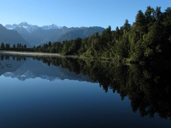אגם מראה שנשקפים בו ההרים המושלגים שמעליו. אגם מתיסון נמצא בתוך שמורה יפיפיה ויש בה מספר מסלולי הליכה קצרים.